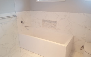 Before and after photos of a bathroom turned into a modern style bathroom at Ellalong.